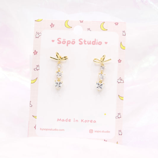 Pastel Pink Crystal Heart Planet Dangle Korean Dainty Style Earrings