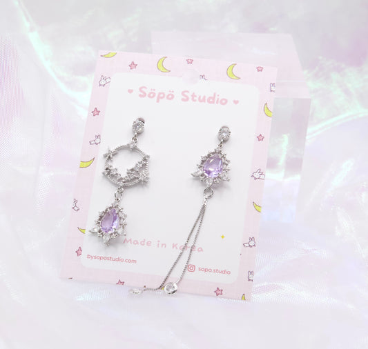 Mis-matched Crystal Chain Pastel Purple Drop Korean Earrings