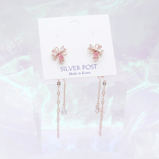 Cute Pastel Ribbon Rose Gold Korean Earrings