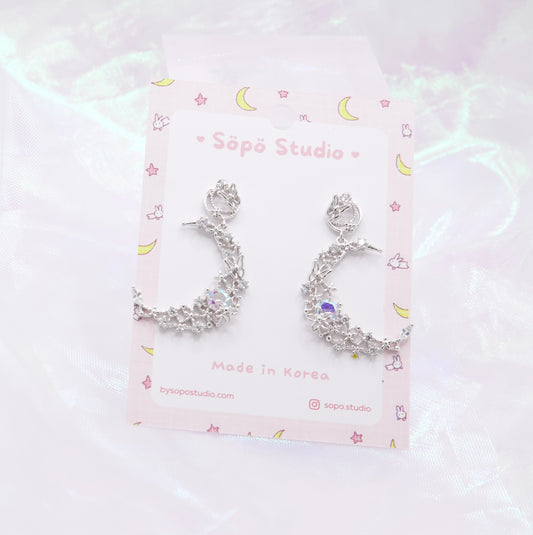Flower Magic Moon Crystal Drop Cute Korean Earrings