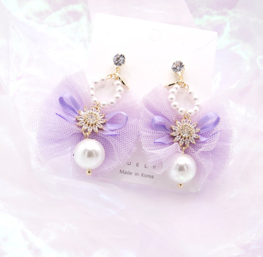 Ribbon Water Drop Violet Elegant Bridal Korean Earrings