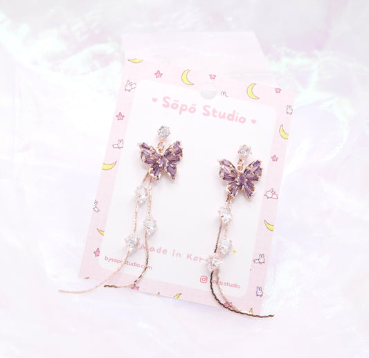 Crustal Butterfly Pink Purple Elegant Dangle Korean Earrings - 2 colors