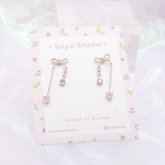 Heart Ribbon Dangle Elegant Bridal Korean Earrings