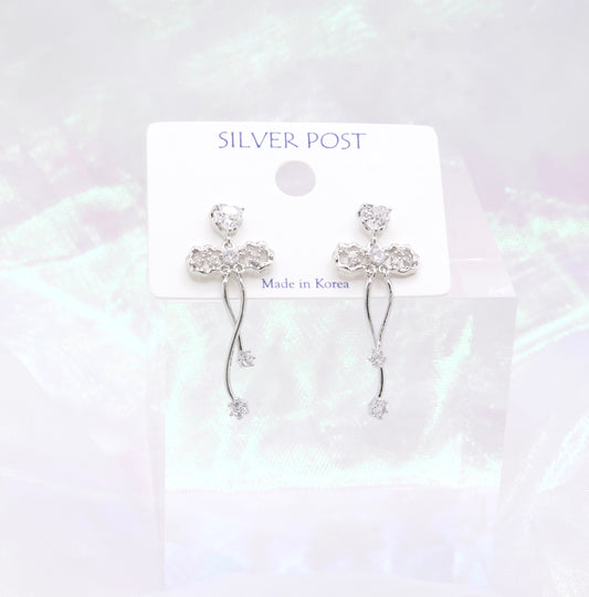 Ribbon Cute Crystal Drop Dainty Style Silver Posts Earrings - 2 Colors