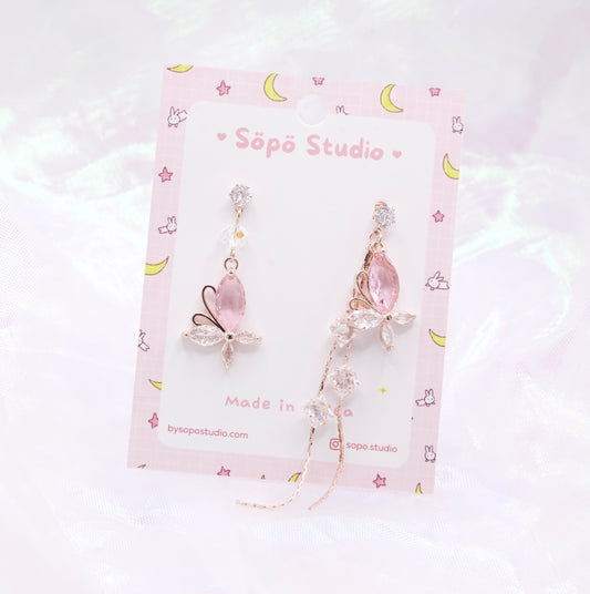 Mis-matched Pastel Pink Butterfly Crystal Korean Earrings