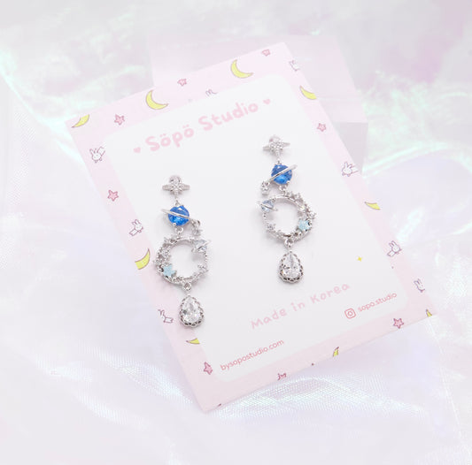 Ocean Blue Planet Cute Dangle Korean Earrings