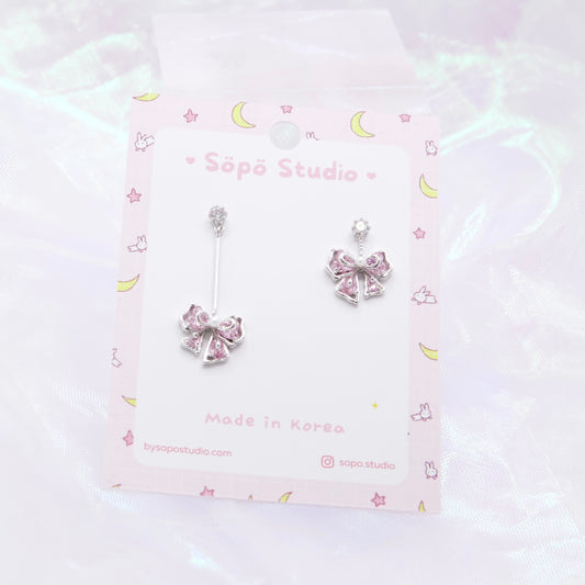 Mis-matched Pastel Pink Ribbon Korean Earrings