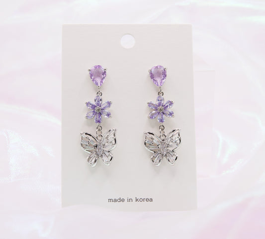 Sailor Saturn Purple Crystal Butterfly Dangle Earrings