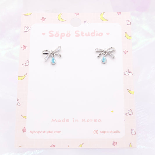 Pastel Crystal Petit Bow Coquette Korean Earrings