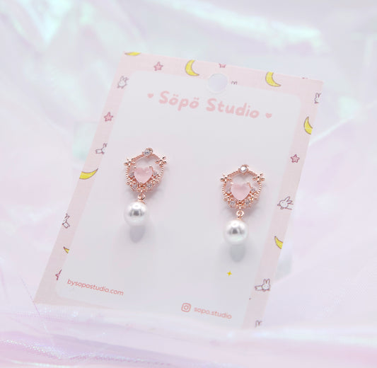 Sailor Moon Inspired Cute Heart Pearl Drop Studs Earrings