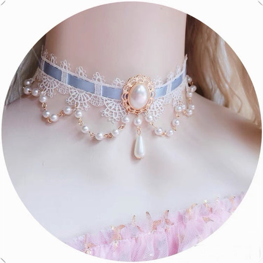 Vintage Lace Double-lawyered Pearl Pendant Retro Choker - 2 colors