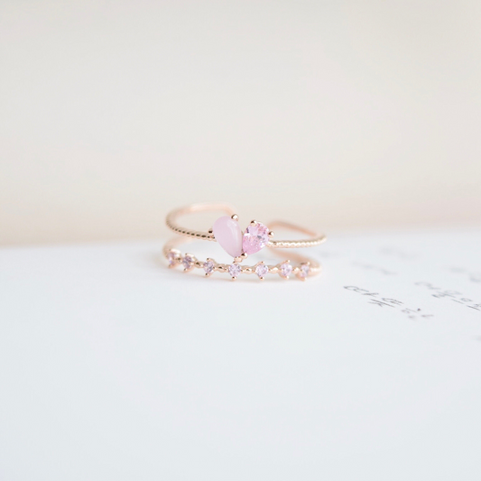 Pink Crystal Heart Layered Adjustable Cute Rings