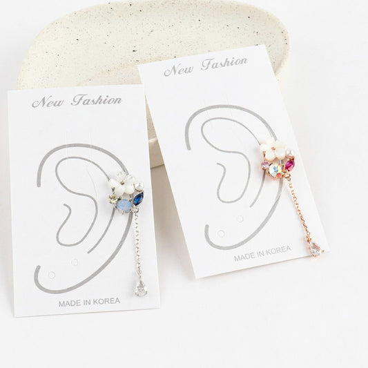 Mother of Pearl Flower Long Drop Ear-cuff - 2 colors