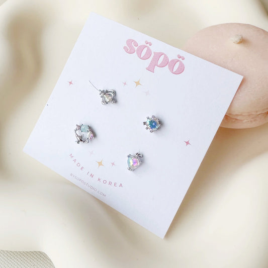 Mis-matched Fairycore Crescent Moon Dangle Korean Dainty Style Earrings
