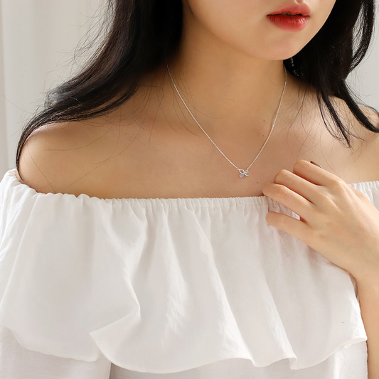 Silver 925 Crystal Ribbon Elegant Korean Necklace
