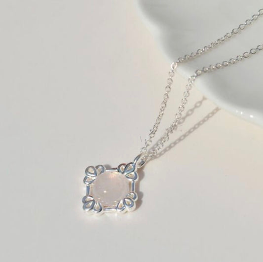 Sterling Silver Natural Stone Royal Romance Elegant Korean Necklace - Agate/Rose Quartz Stone