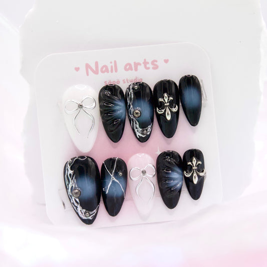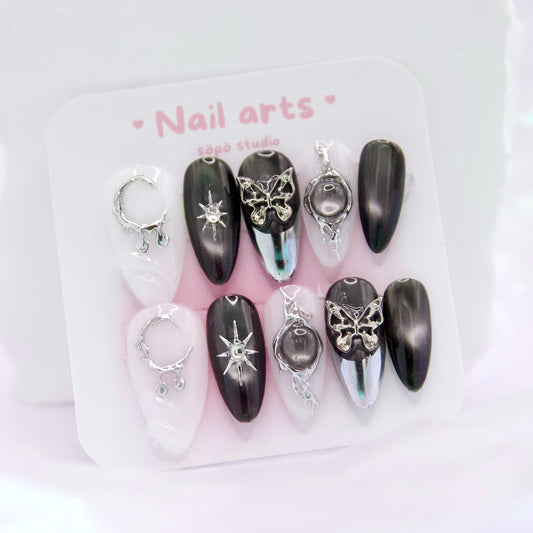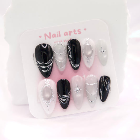 Cat Eyes Effect Black Metallic Punk Press-on Nails
