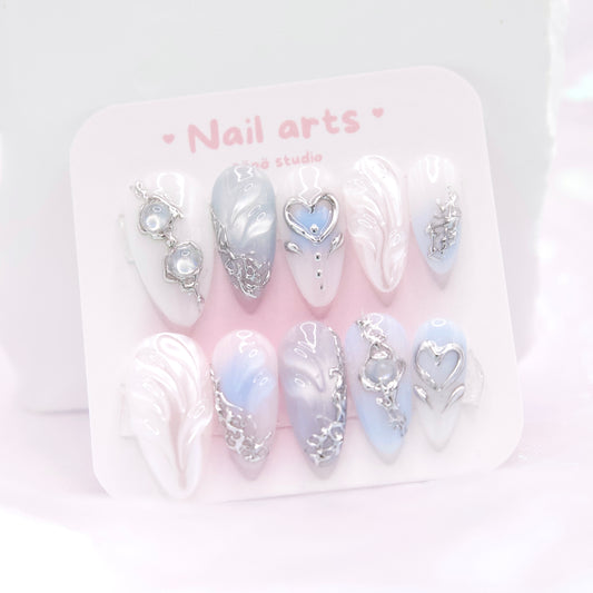 Pastel Blue Metallic Heart Dreamy Press-on Nails