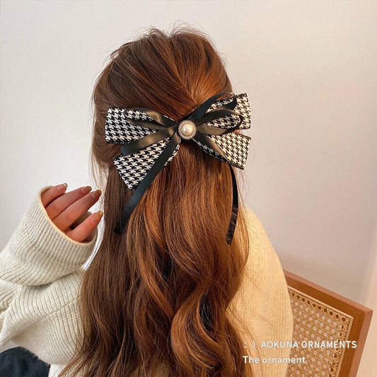 Houndstooth Pearl Elegant Ribbon Hair Clip
