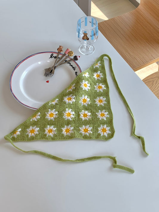 Crochet Triangle Cute Vintage Head Scarf - Summer Daisy Field