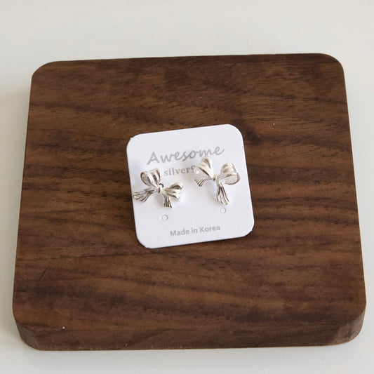 Premium Silver 925 Korean Bow Stud Earrings - Made in Korea