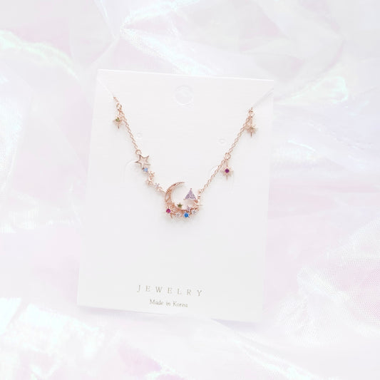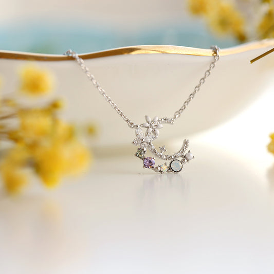 Crystal Stone Moon Elegant Style Korean Necklace - Made in Korea