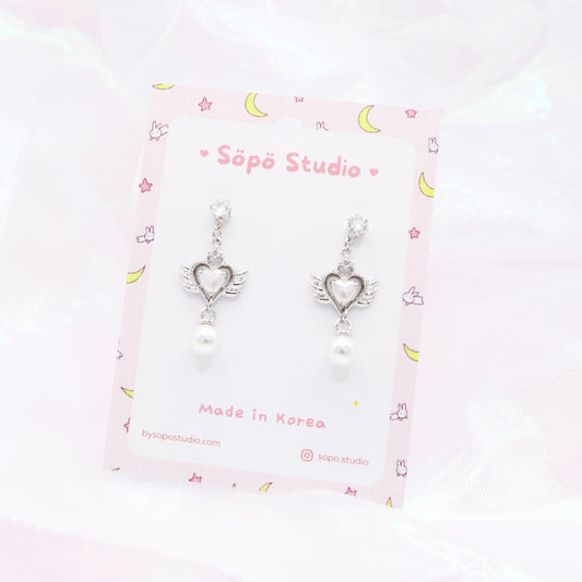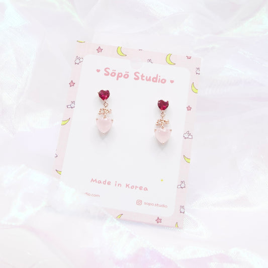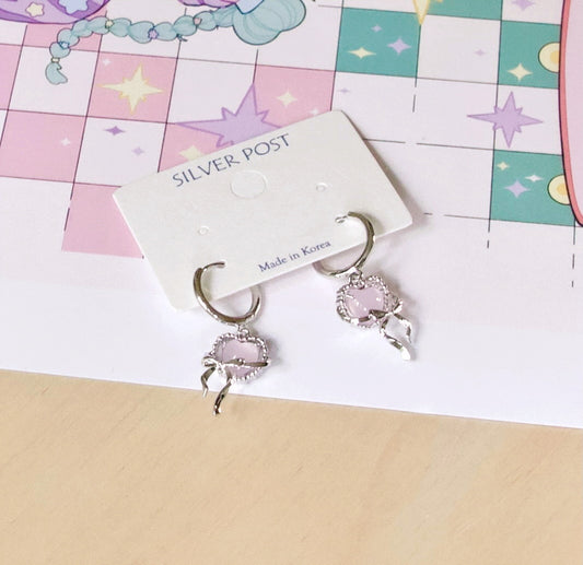 Heart Drop Ribbon Hoop Earrings - 2 colors
