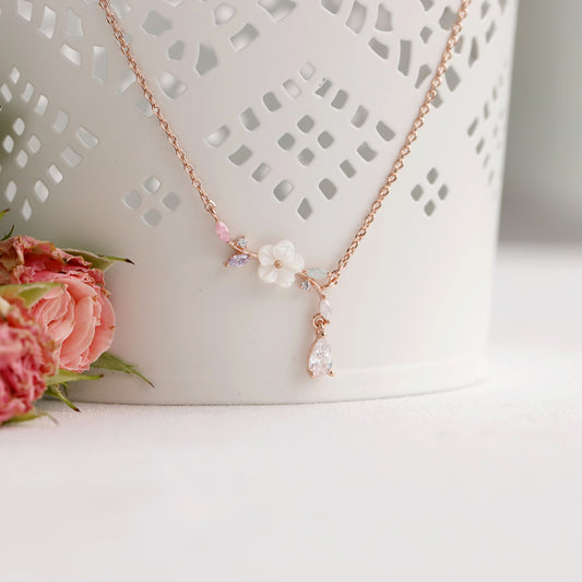 Floral Crystal Drop Elegant Style Korean Necklace - Made in Korea