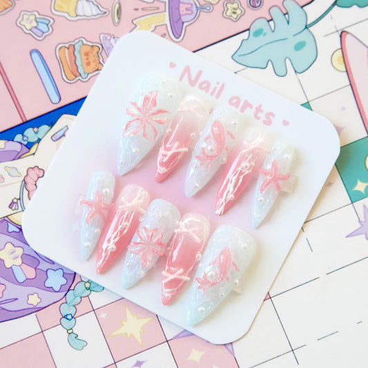 Pink Jellyfish Starfish 3D Gel Oceanic Press-on Nails