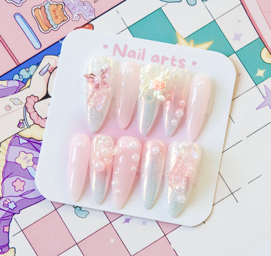 Glitter Kira Butterfly Hand Draw Handmade Press-on Nails