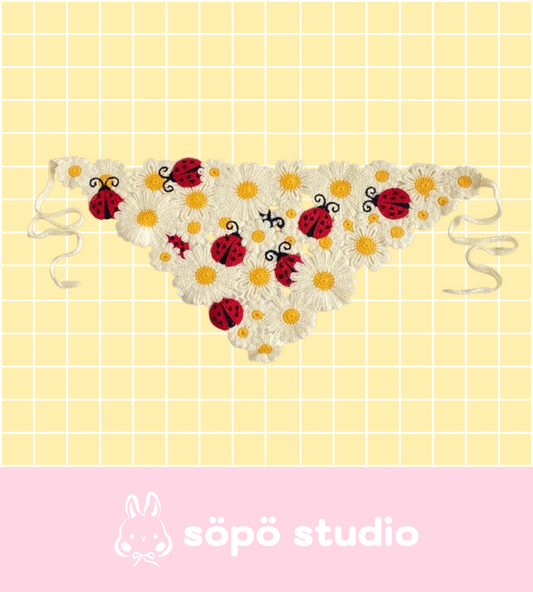 Crochet Triangle Cute Vintage Head Scarf - Summer Daisy Field