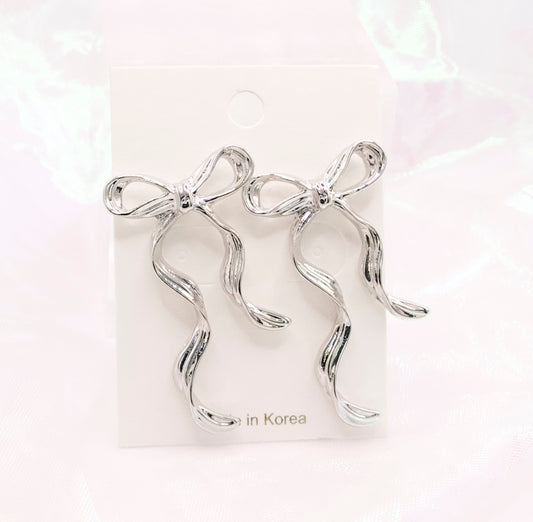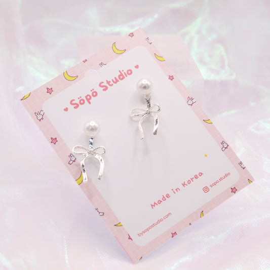 Ribbon Pearl Elegant Cute Studs Korean Dainty Style Earrings