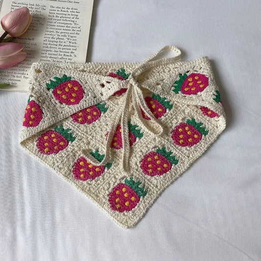 Crochet Triangle Cute Vintage Head Scarf - Strawberry