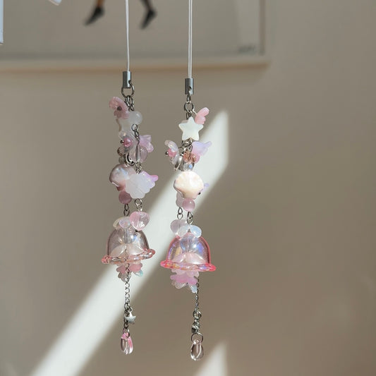 Pink Pastel Jellyfish Flower Phone Charm/Key ring