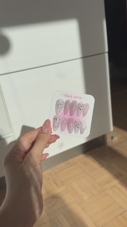 Handmade Y2K Purple Pastel Metallic Heart Press-on Nails