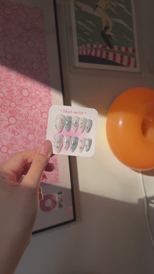 Blue Metallic Heart Y2K Cute Handmade Press-on Nails