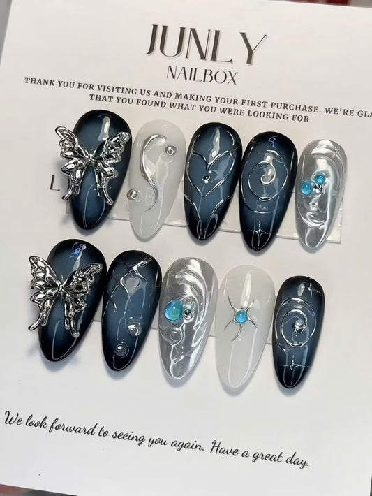 Handmade Silver Glitter Butterfly Rosie Press-on Nails