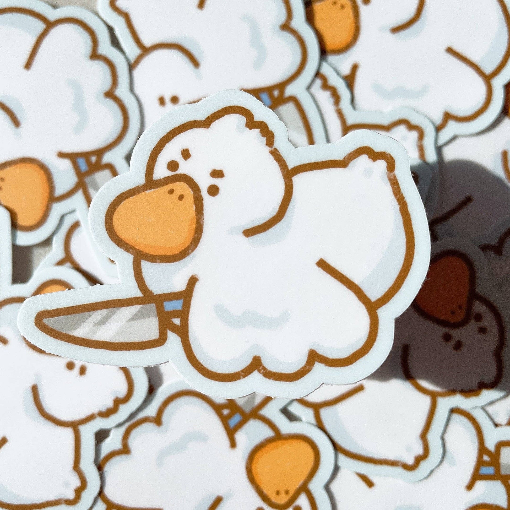 Angry duck with knife! This heavy duty waterproof vinyl sticker is perfect for decorating any laptop, water bottle, iPad case, notebook cover, etc!