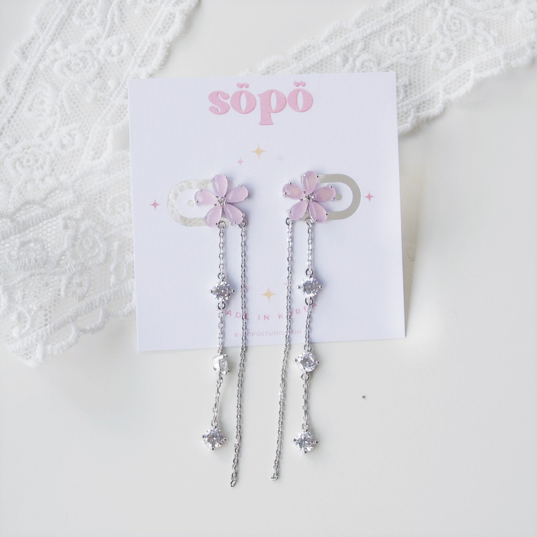 Feel beautiful and feminine with these Sakura Earrings! Their romantic crystal drops make them the perfect jewelry piece for any summery look, inspired by Japanese and Korean fashion trends. Lightweight and comfortable enough to wear daily, these earrings make a great gift!