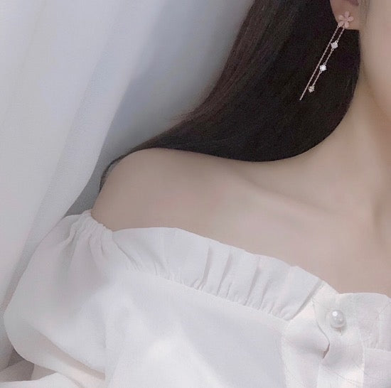 Korean Cute Sakura Romatic Crystal Drop Dangle Earrings