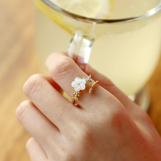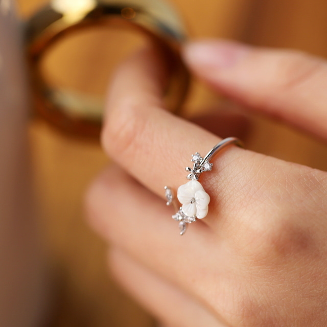 Mother of Pearl Dainty Elegant Bridal Korean Adjustable Rings - 3 colors