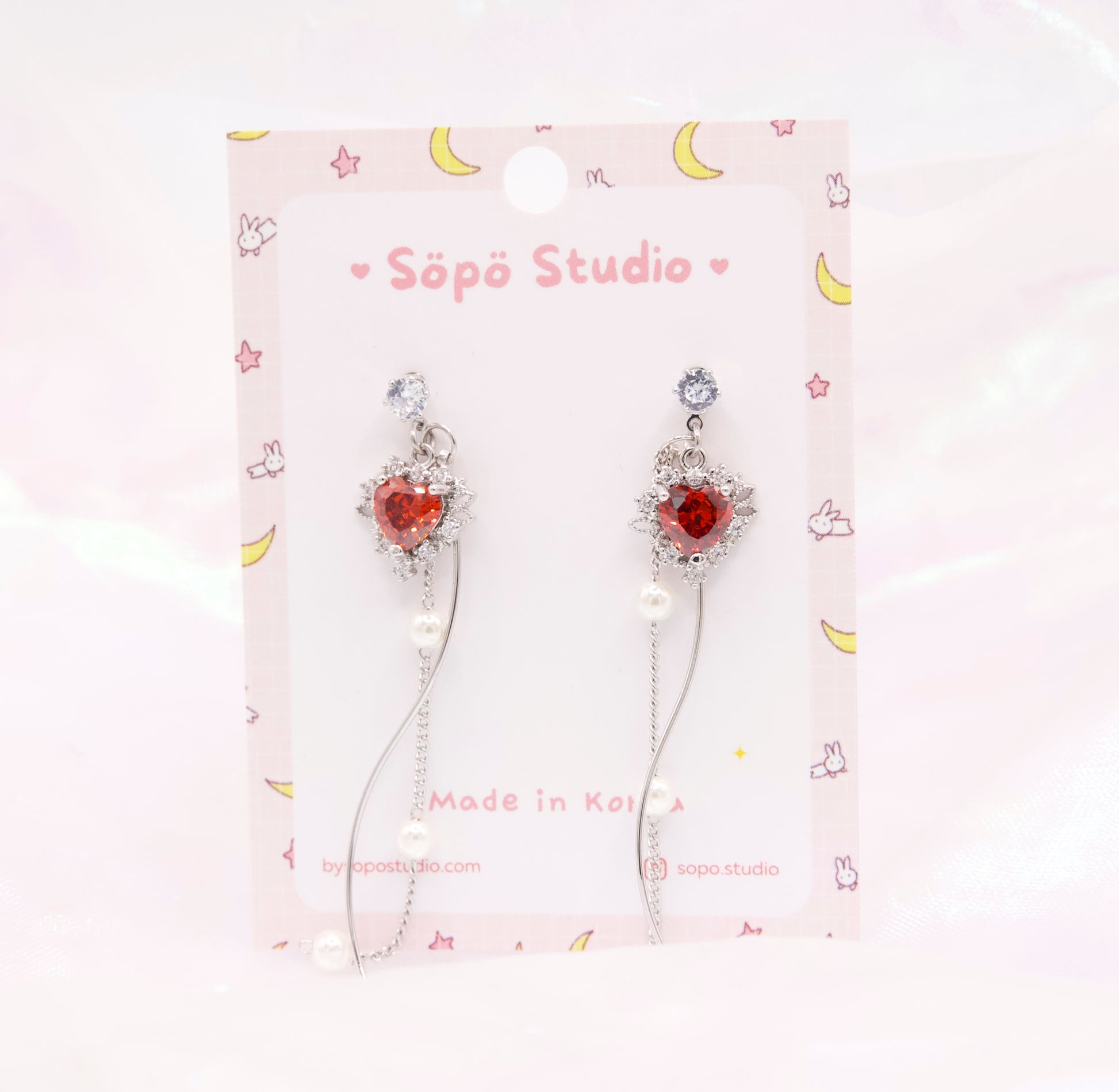 Stone Heart Pearl Drop Dangle Korean Dainty Style Earrings - 2 Colors
