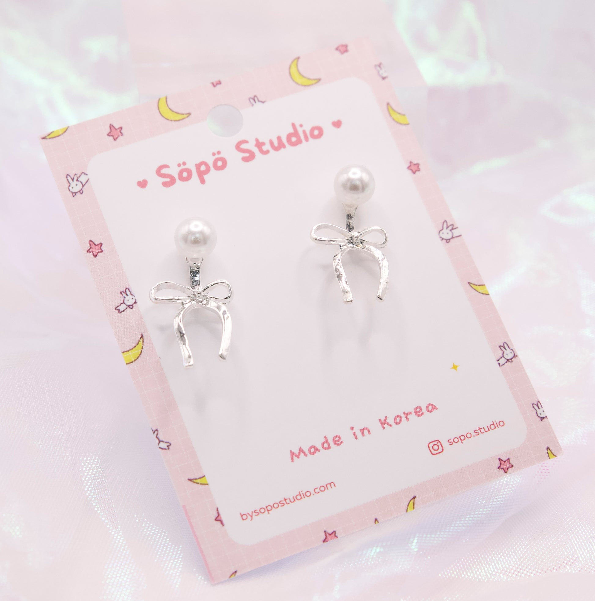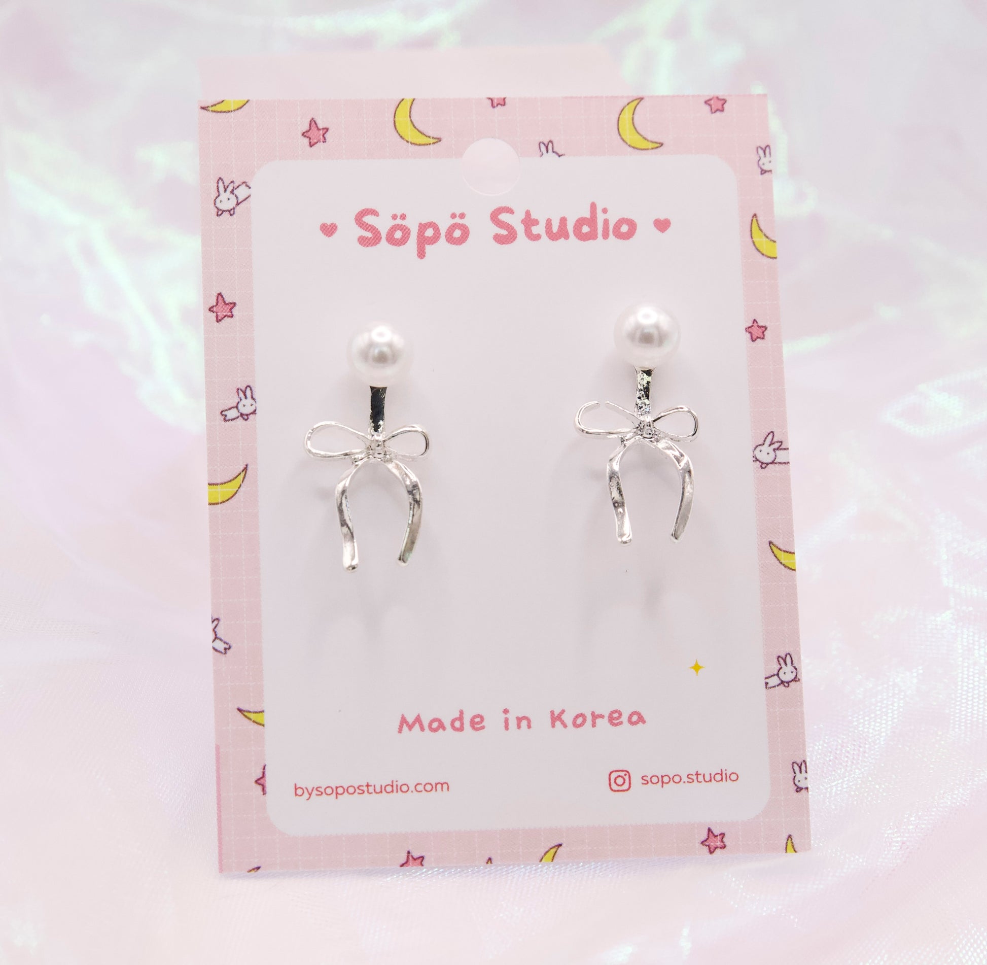 Ribbon Pearl Elegant Cute Studs Korean Dainty Style Earrings