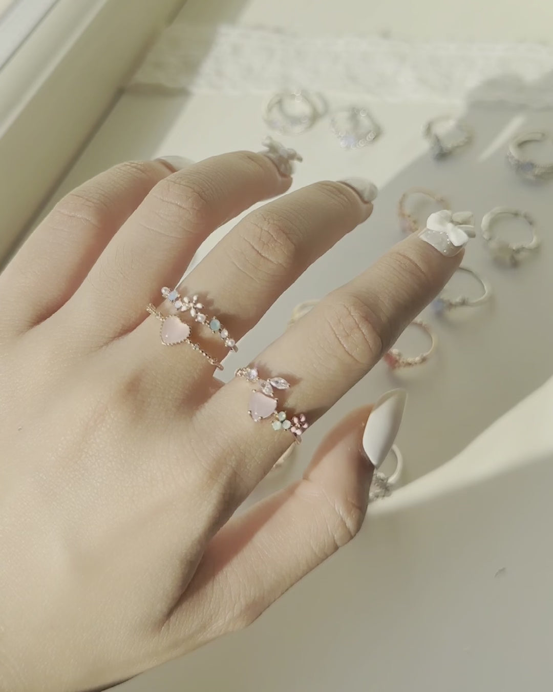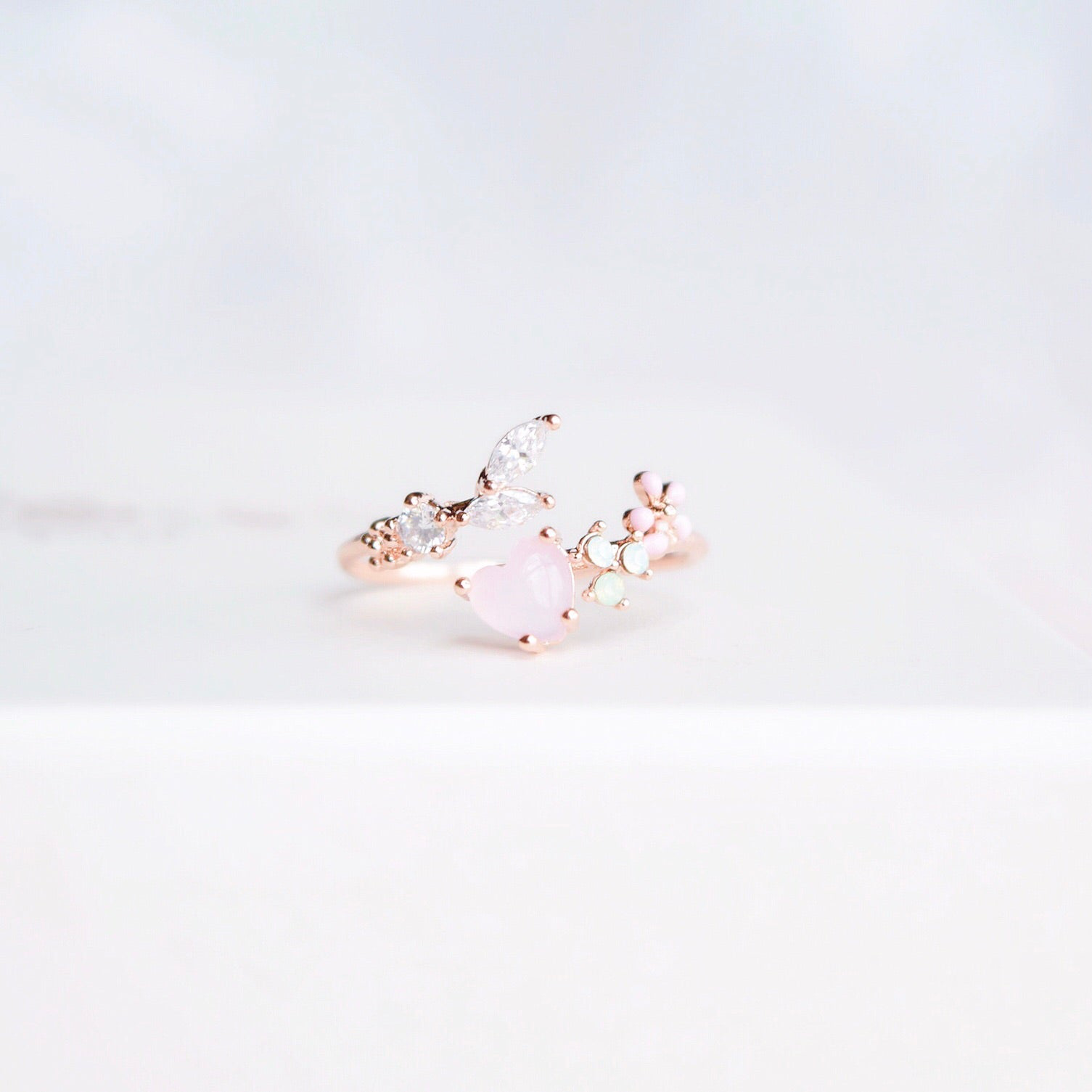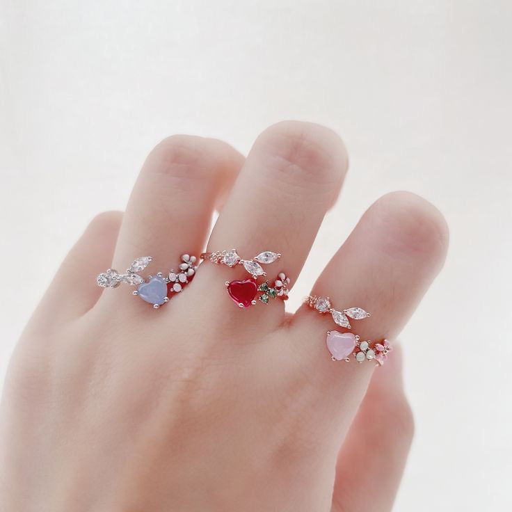 Korean Love Petit Heart Flower Dainty Rings - 3 colors
