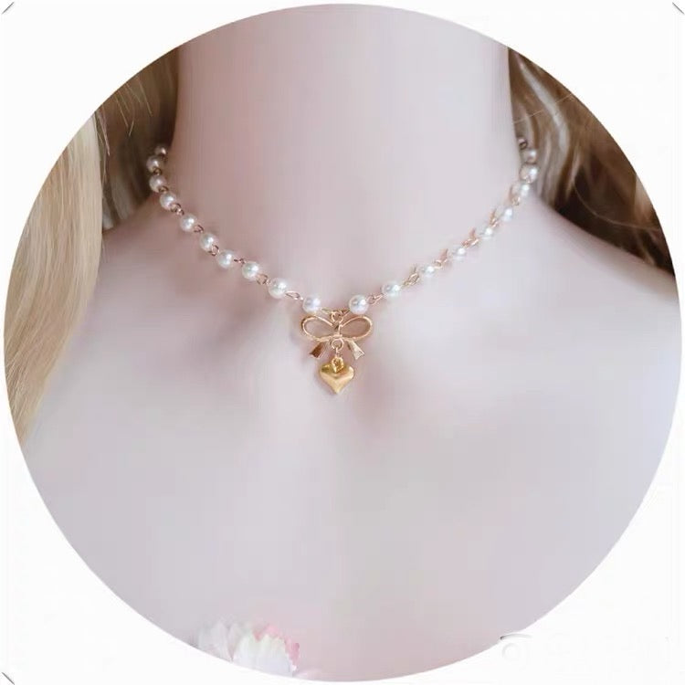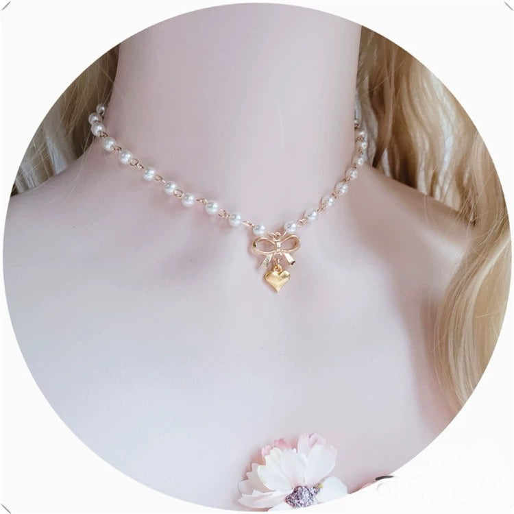 Coquette Heart Ribbon Pendant Necklace