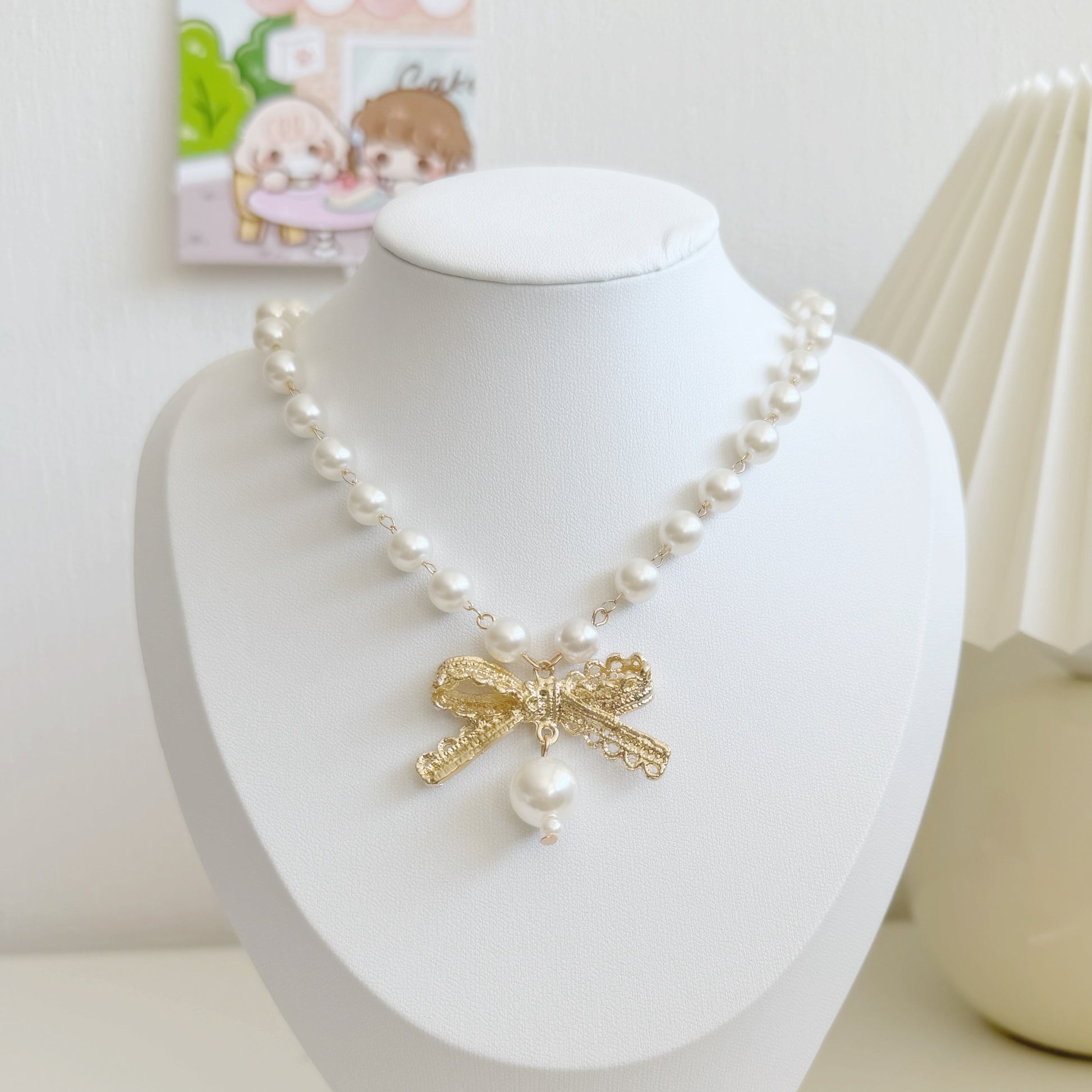 Coquette Ribbon Pearl Drop Vintage Necklace