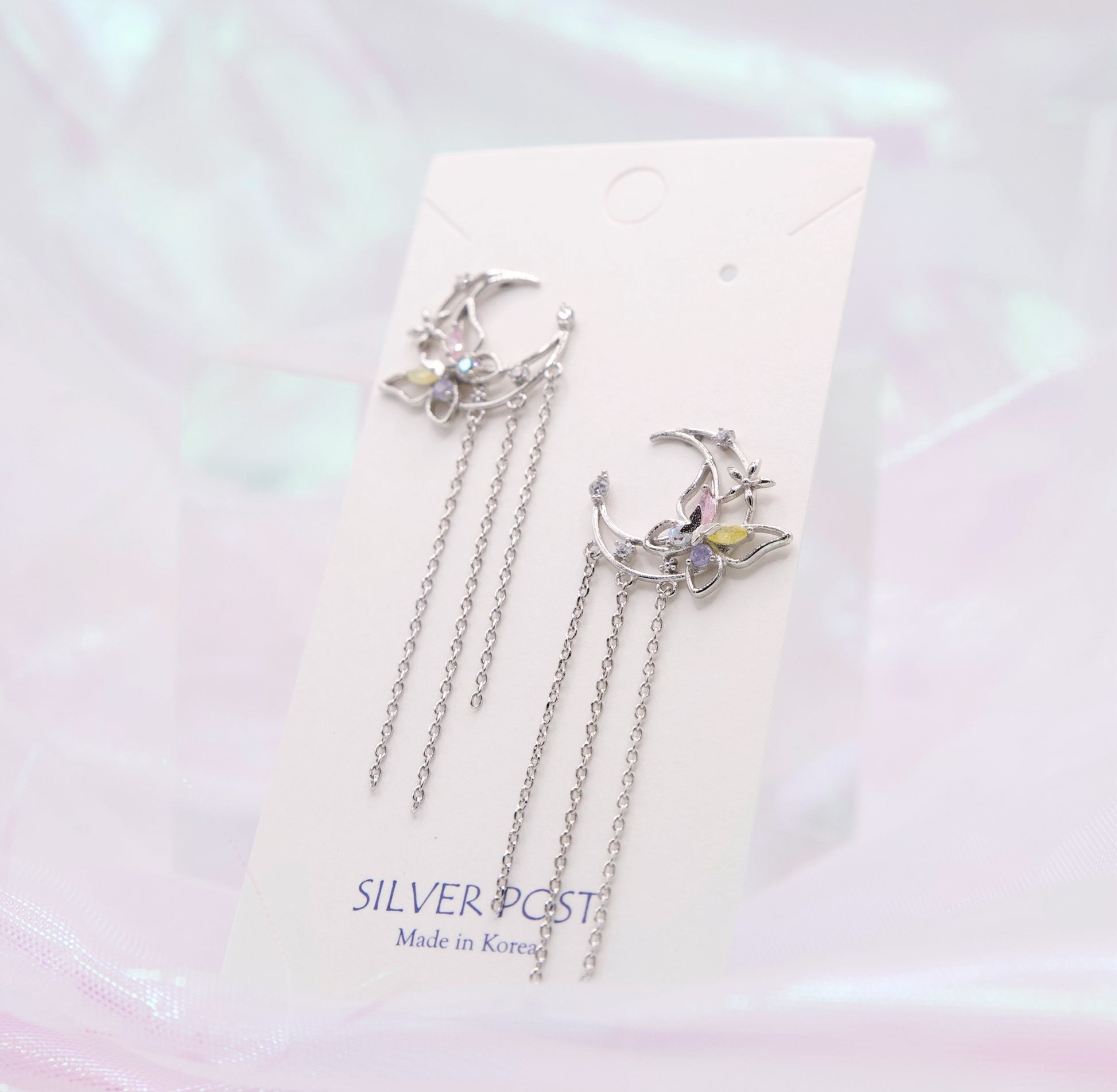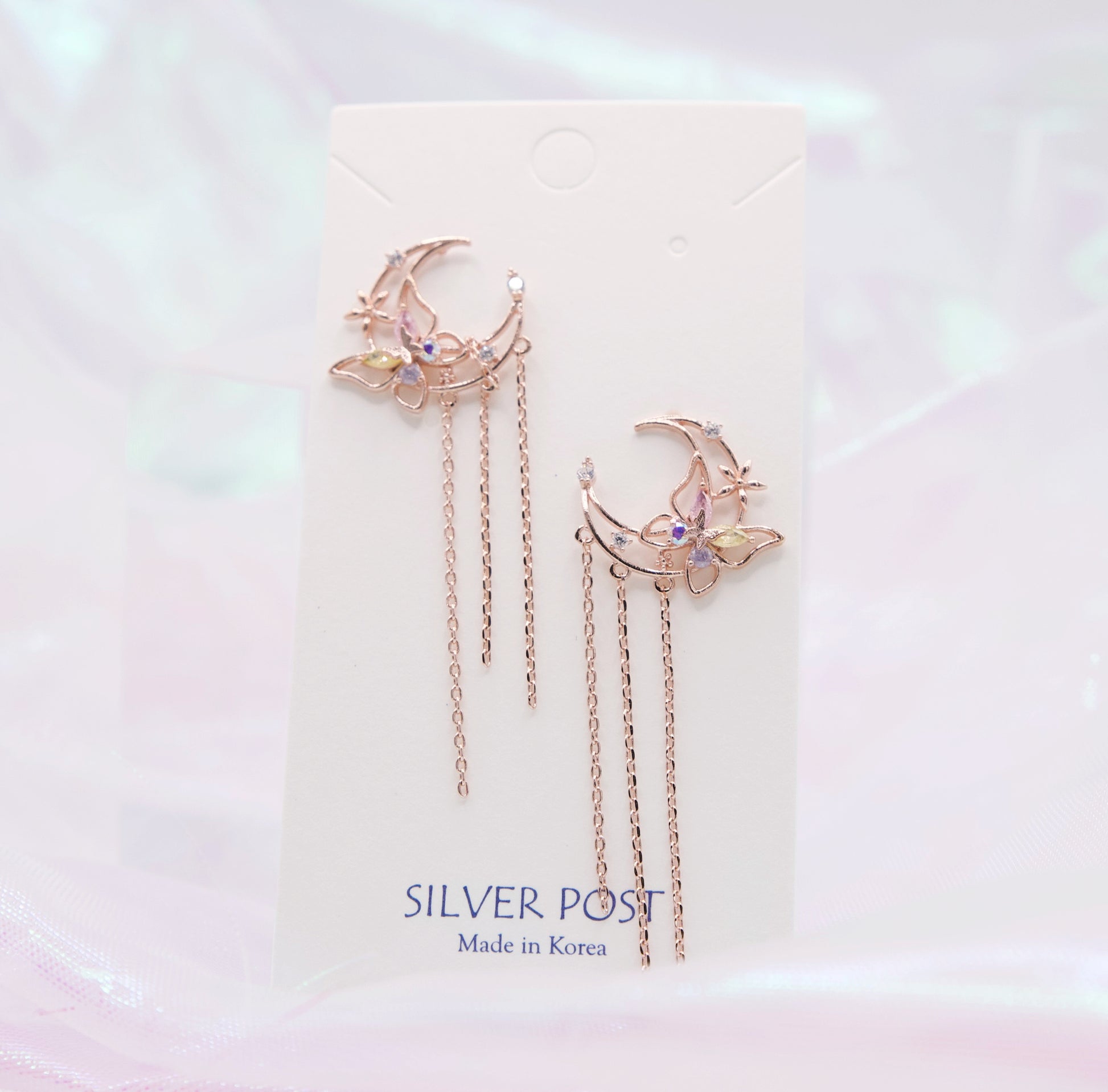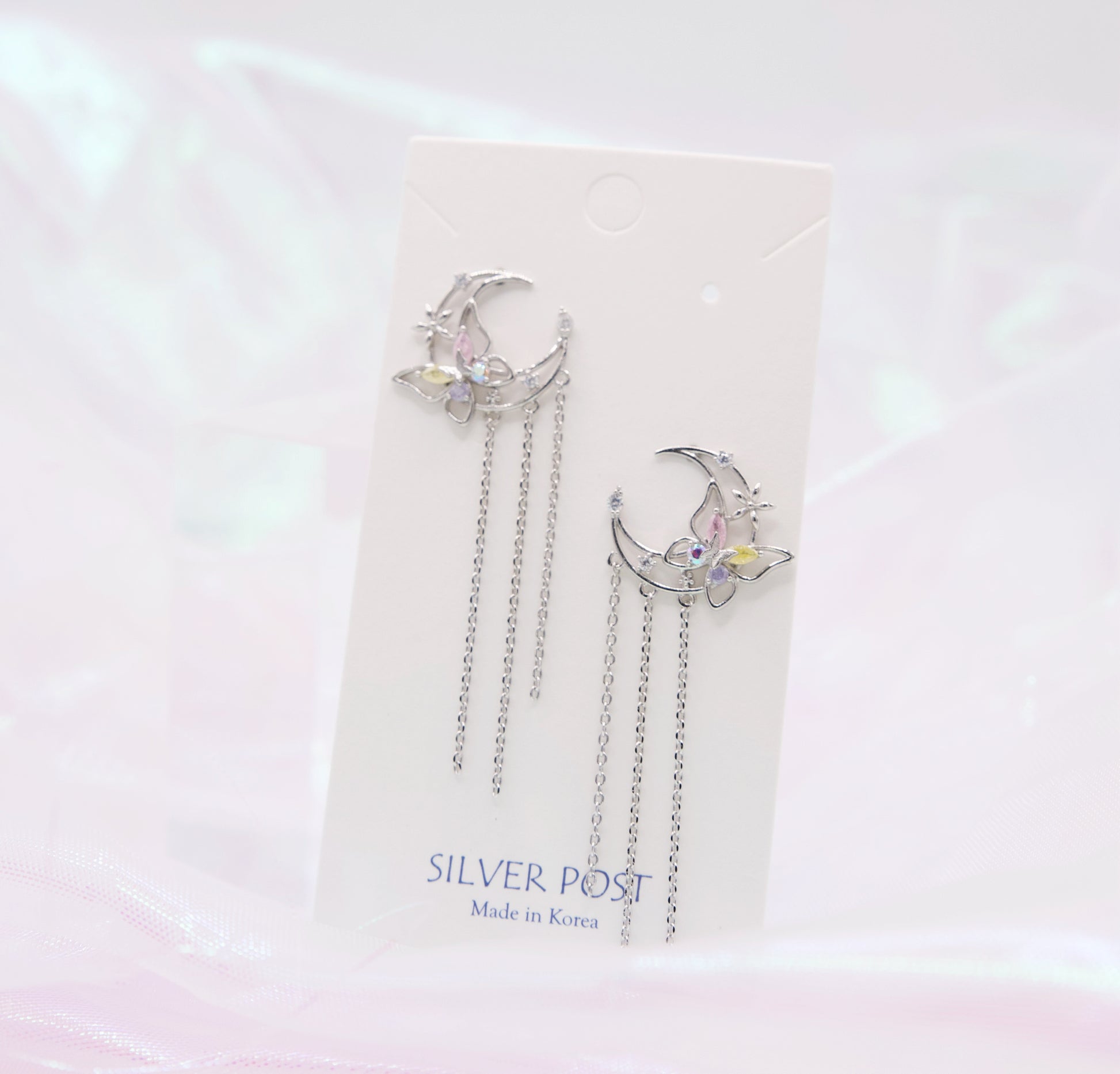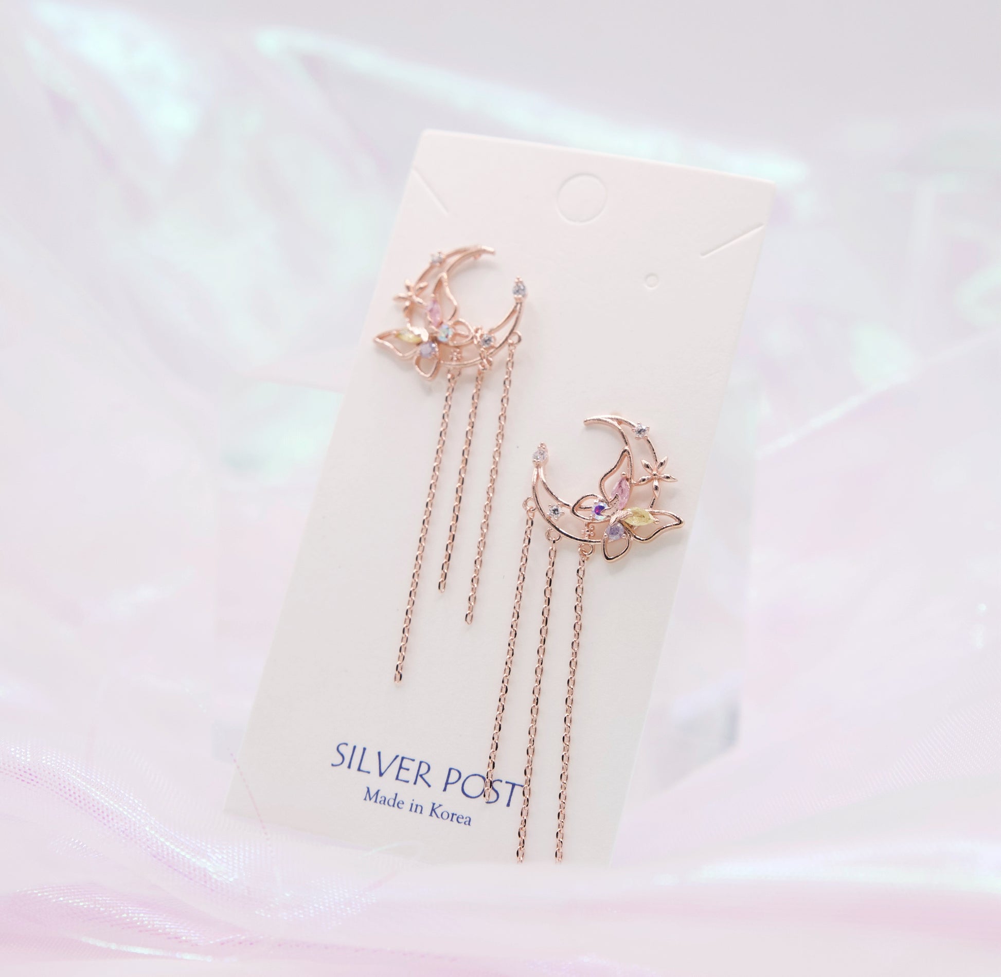 Crescent Moon Butterfly Long Chain Korean Earrings