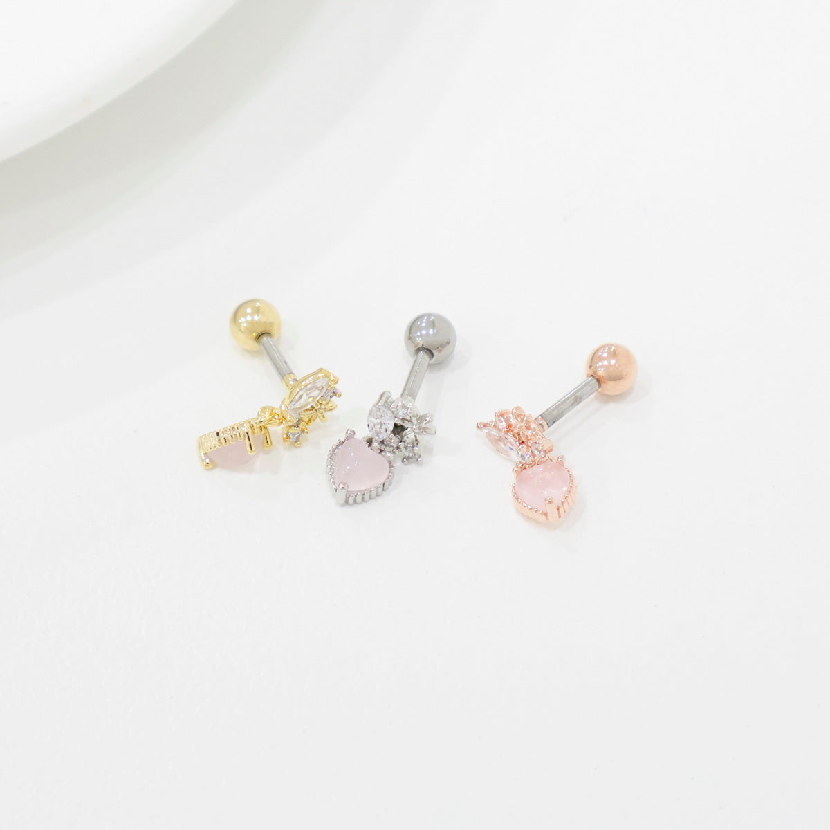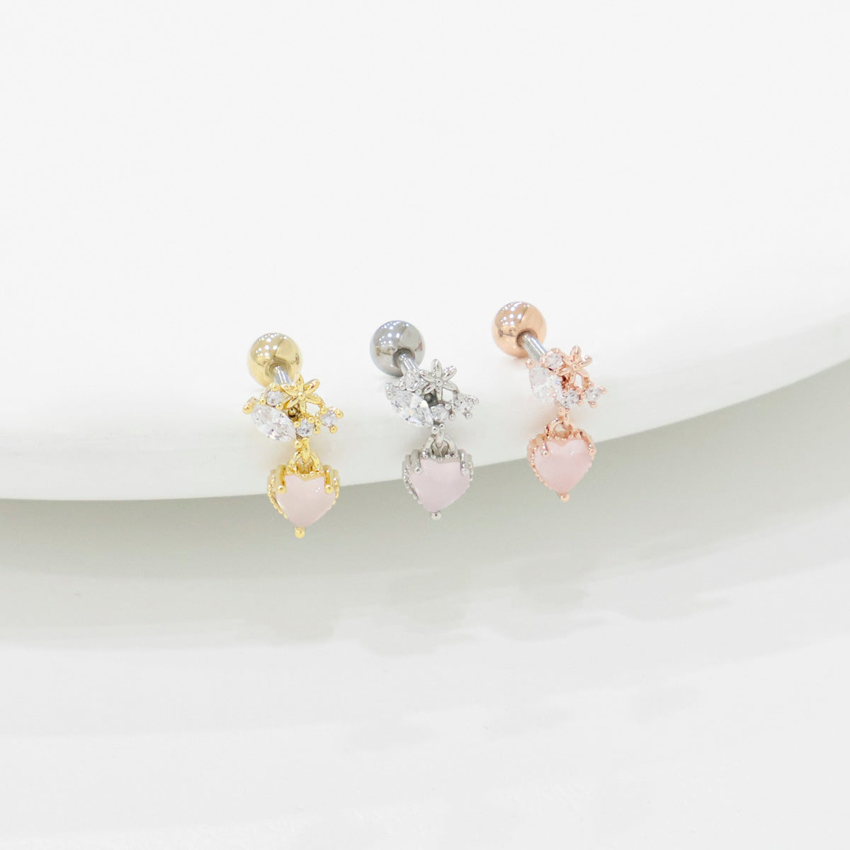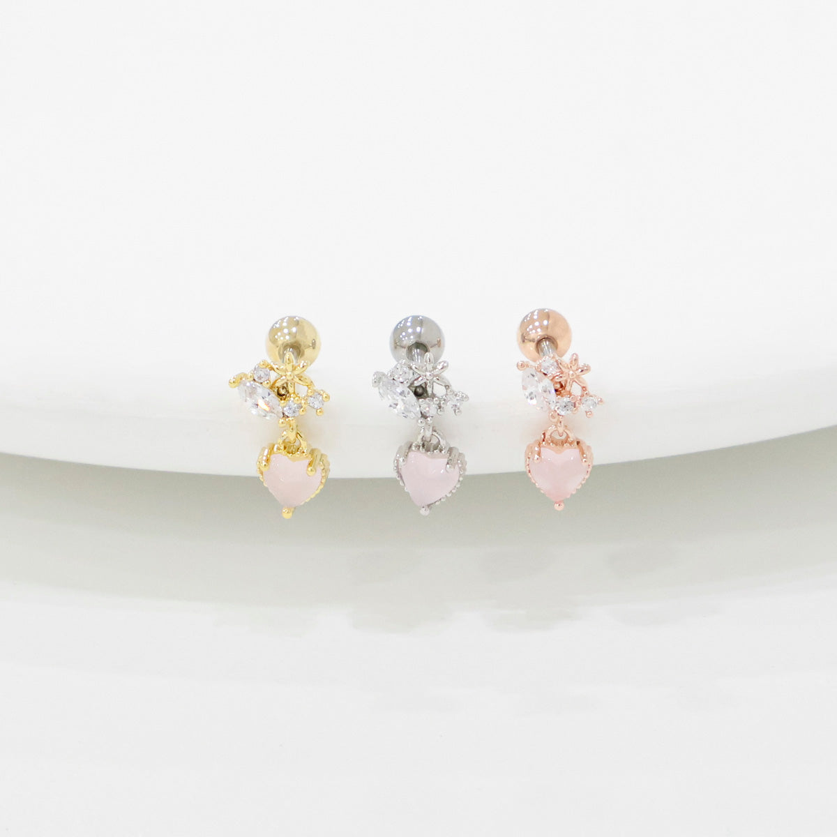 Crystal Heart Drop Korean Ear Piercing - 2 colors