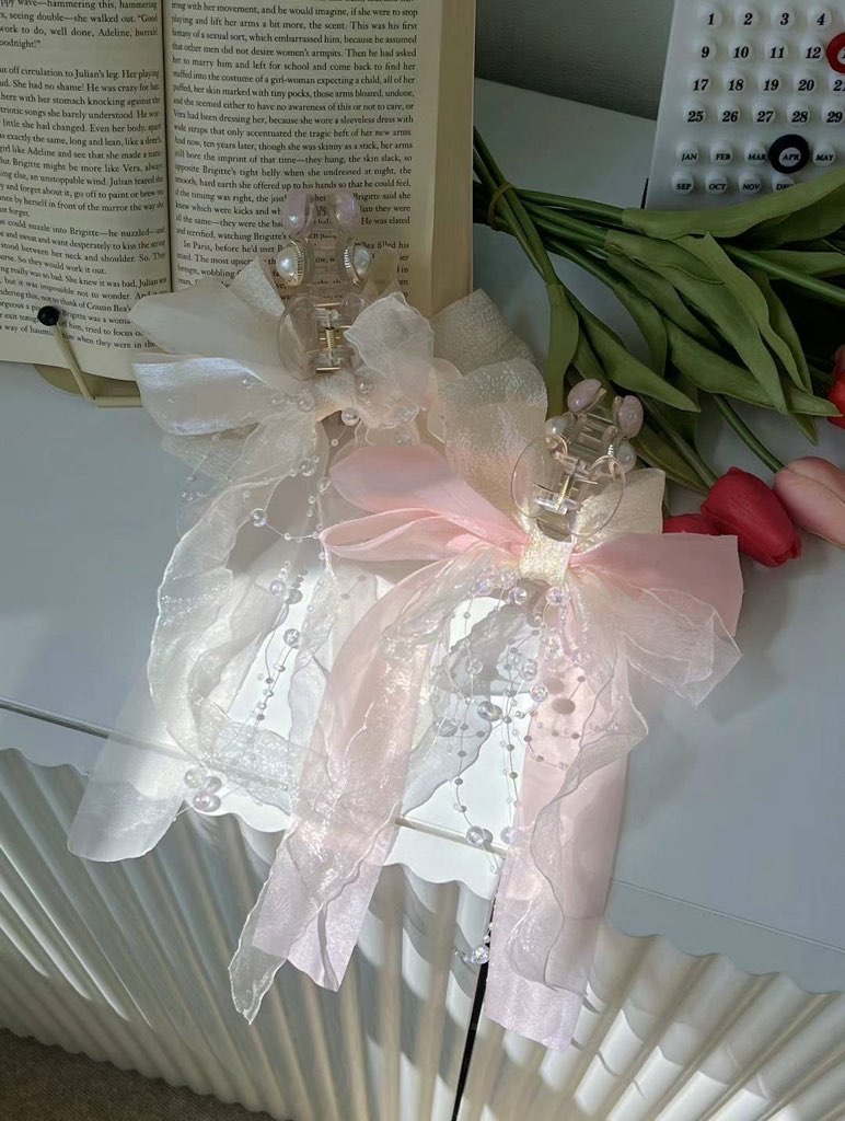 Cute Korean Organza Hair Bow Pearl Drop Hairclaws - 2 colors