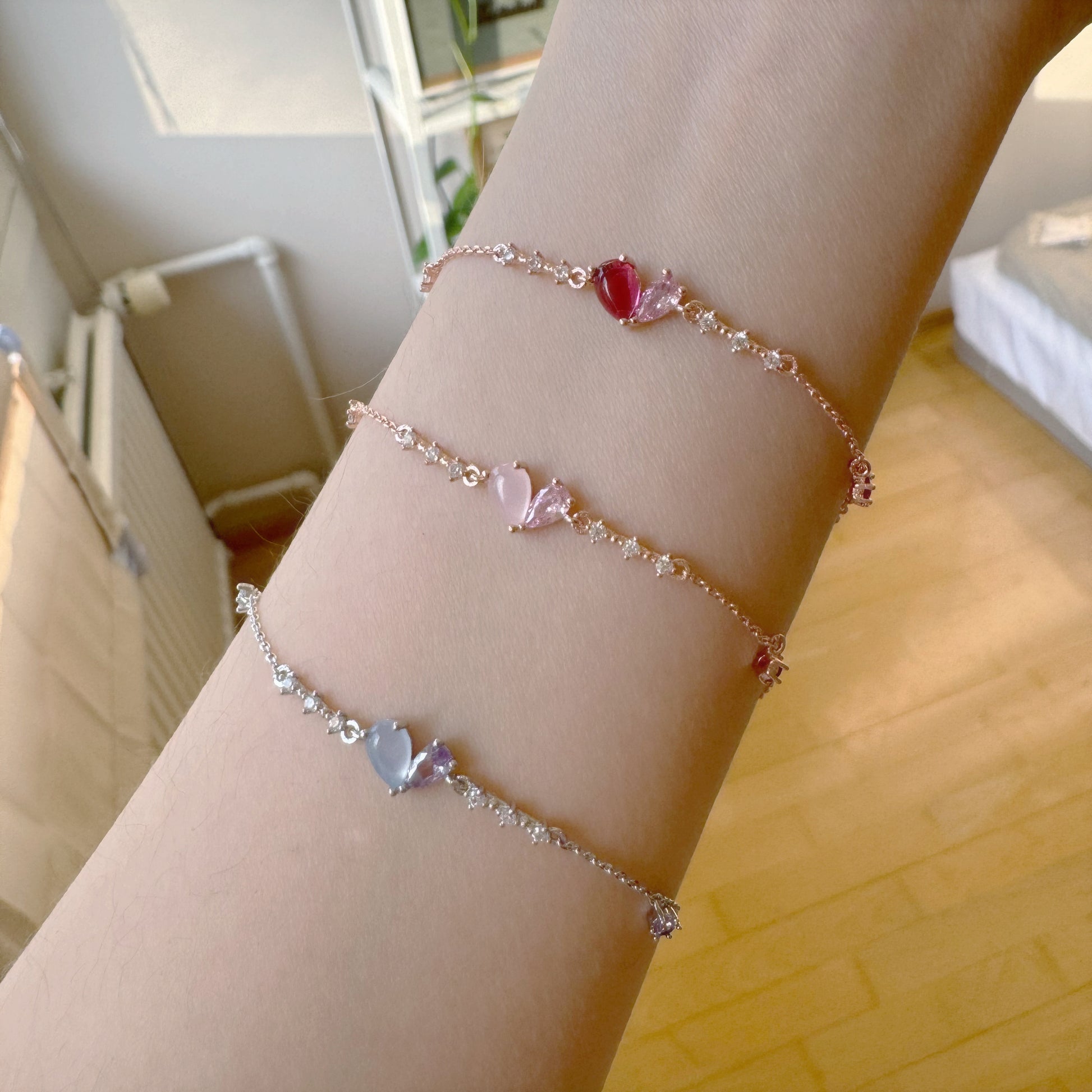 Heart Crystal Korean Dainty Style Bracelets - 3 colours